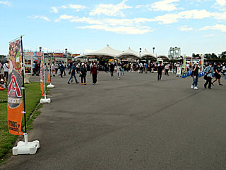 昼休み、 ステージエリアで「 青空プロレス」が行われていたので観戦。 競馬場で 青空プロレスというのも珍しい。 レスラーは ランズエンドプロレスリングの 崔領二、 大門寺崇、 最上九、 坦々麺造、 エビ天くんとのこと。 |  |  |