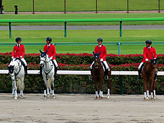 本日の 誘導馬。 メインレースを担当したのは レンディル、 シークレットパス、 マイネルラクリマ、 ショウナンライズでした。 |