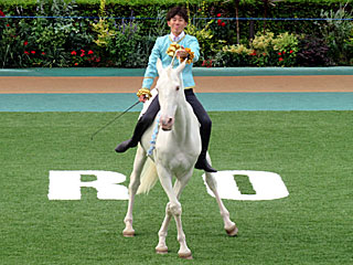 そして最終レース終了後、パドックで「 ファンタジックホースショー」が行われました。 演技するのは ファンタスティコと柳瀬職員。 パドックでこのコンビを見るのは初めてかと。 |