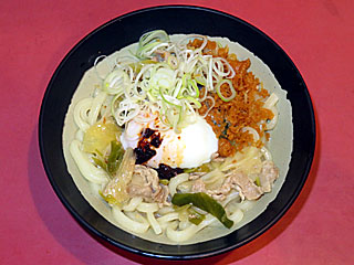 東京競馬場グルメ:ぶっかけ肉玉うどん〔馬そば深大寺〕 |