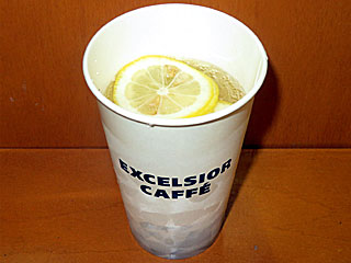 食後にフジビュースタンド3Fの 「エクセルシオールカフェ」へ。 今日は最高気温30℃で季節外れの真夏日となり、とにかく暑い! ってことで、さっぱりと「 レモネードソーダ」を購入。 レモン果汁たっぷりでおいしい! |