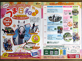 今日は 今春に続き、今年2回目の「 今日はうま日和♪」と題したイベントが開催されました。 東門から入場し、まずは来場者向けにプレゼントされた「 東京競馬場オリジナルシャイニングポーチ」をいただく。 |