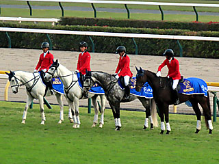 本日の 誘導馬。 メインレースを担当したのは サクセスミノル、 ボスジラ、 サトノソルタス、 デルマラピスラズリでした。 |