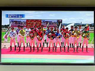 昼休み、ウィナーズサークルにて「 日本ダービー騎乗ジョッキー紹介」が行われました。 |
