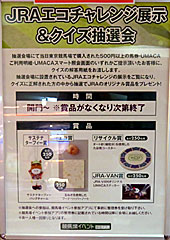 毎年、 安田記念週はJRA環境イベントを実施しており、今年も「 JRAエコチャレンジ」として実施されました。 東京競馬場では、 センターコートで「 JRAエコチャレンジ展示&クイズ抽選会」が行われたため参加してみることに。 JRAが行っている環境対策に関する展示を見て、それに関するクイズの全問正解者を対象とした抽選会にも参加したところ、 サステナターフィー賞の「 サステナターフィーバッグチャーム」が当たった! |