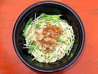 沖縄そばに担々麺の肉味噌をトッピングしたもの。