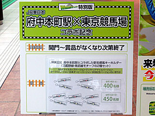 今週も「 Welcomeチャンス!特別版」。 先週まで各GⅠレース名がデザインされた「JR東日本府中本町駅名標風キーホルダー」が当たる抽選でしたが、今週はそれらのGⅠ5レースのうちランダムで1つが、土曜400人、日曜450人に当たるというもの。 NHKマイルカップと ヴィクトリアマイルは当たったので、他3レースも欲しかったが、今日は何も当たらず… |