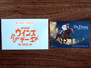 結果はC賞で、ドウデュースがデザインされた「クオカード」を貰う。 |  |  |