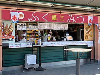 食後に フジビュースタンド2F屋外にある 「福三」へ。 「 ソフトクリームバニラ」を注文。 甘い!冷たい!ウマい! |