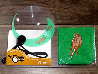 そして今日は「 敬老の日」ということで、シニア向けに「 首掛けBIGルーペとお馬のタオルセット」も配布されていたのでいただいてみる。 例年、シニアじゃなくても貰えるので。 |