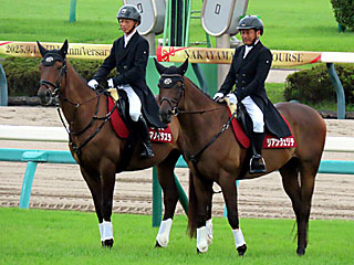 今日のメインレースの誘導馬は、 アサマノイタズラに 武士澤友治元騎手、 リアンヴェリテに 勝浦正樹元騎手が騎乗していました。 |
