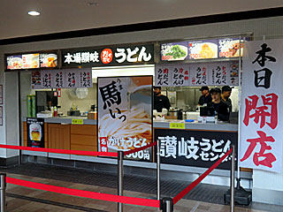 朝メシはオープン2日目の 「讃岐うどんセンター」へ。 「 かき揚げうどん」と「 もつ煮込」を注文。 かき揚げは恐らくタマネギのみだと思うが、サクサクしていておいしかった! もつ煮も普通においしい。 |