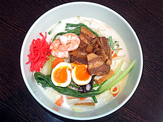 昼メシは フジビュースタンド1Fの 「みまつ」へ。 またまたグランドメニューが刷新されたため、そのなかから新メニュー「 ミマッチョ麺」を注文。 エビ、味玉、野菜、角煮たっぷりのちゃんぽん。 具材もりもりという意味と、店名に掛けて「ミマッチョ」と名付けたものと思われますが、商品名以外の情報がないため、どんな麺が出てくるのか分からないというのは問題かと… |
