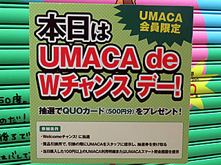 今日の「 Welcomeチャンス!」は「 UMACA de Wチャンス」デー! しかし、自分はハズレ… |