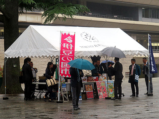 そんな雨のなか、正門前広場には「 伊豆の国物産展」が出店していました。 |
