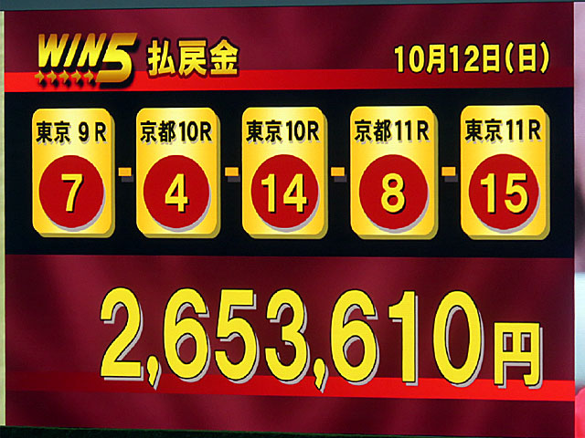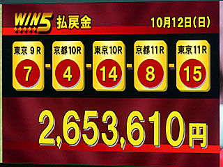 ちなみに今日の WIN5は2-3-2-5-4番人気の決着で、払戻金は265万3610円となりました。 |