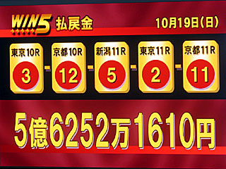 ちなみに今日の WIN5は10-14-1-9-2番人気の決着で的中1票。 歴代高配当1位となる5億6252万1610円を記録しました! |