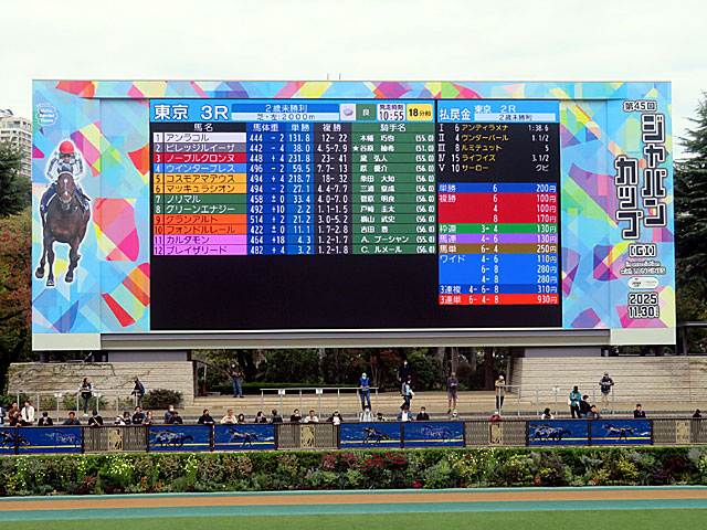 てか、夏季に場内の投票窓口が大量閉鎖されましたが、その後に迎えた初のGⅠ天皇賞当日は馬券購入や払戻が長蛇の列に! 自分はUMACA投票機で買ってしまうので並ぶことはありませんでしたが、GⅠ開催日だと年に数回とか、数年ぶりに競馬場へ来るような客が多く、UMACAなんて持っておらず、かといって作ろうとも思わないし、スマッピー投票なんて知らないし、知っていても電波が混んでいてスマホは全然繋がらないし、結局、マークカード+現金投票になるので、特にフジビュースタンド2F馬場側の窓口の混雑が酷い状況! 年数日しかないGⅠ開催日以外は足りてるかもしれないので、コスト削減のために大量閉鎖という判断に至ったのかもしれませんが、やっぱり減らし過ぎという印象。 競馬場に来ても馬券はPATで購入する人も多いですが、とにかくスマホが繋がらないので、現金投票に向かわざるを得ない状況にもなっており、投票窓口を大量閉鎖するならせめて混雑日の電波を改善してからにして欲しかった… | ||||||||||||||||||||||||||||||||||||||||||||||||||||||||||||||||||||||||||||||||||||||||||||||||||||||||||||||||||||||||||||||||||||||||||||||||||||||||||||