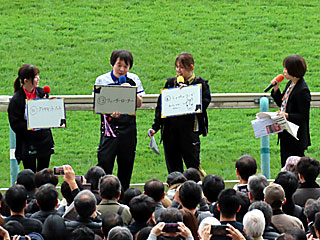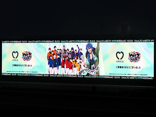 最終レース終了後、ターフビジョンで「UMAJO MEETS HYPNOSISMIC -D.R.B- スペシャルアナウンス」という映像が流されました。去年は「UMAJO×ENSEMBLE SQUAREスペシャルライブ」と題したアニメーションが流されていたので、そのようなものかと思っていましたが、今年は静止画のみ10秒くらいで終わってしまった… | ||||||||||||||||||||||||||||||||||||||||||||||||||||||||||||||||||||||||||||||||||||||||||||||||||||||||||||||||||||||||||||||||||||||||||||||||||||||||||||
