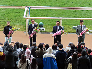 登場したのは主戦だったC.ルメール騎手、木村哲也調教師、馬主シルクレーシング、生産者ノーザンファーム。 |  |  |