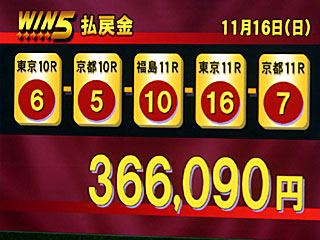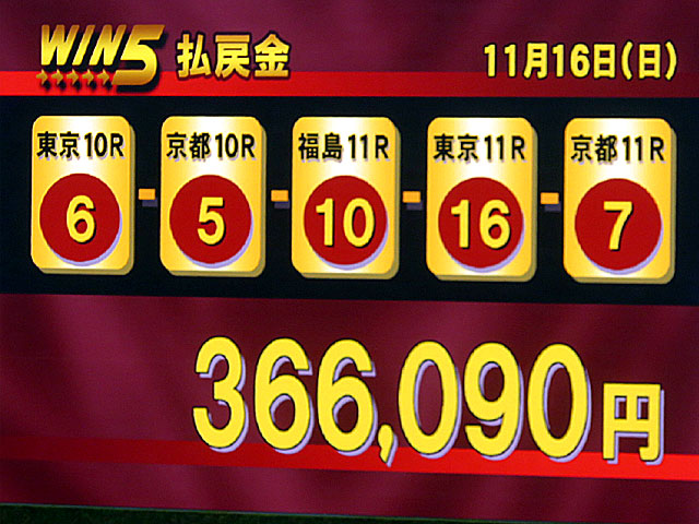 ちなみに今日の WIN5は3-1-3-1-1番人気の決着で36万6090円でした。 |