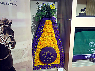 センターコートでは「フォーエバーヤングブリーダーズカップクラシック優勝記念展示」が始まりました。昨秋に「イクイノックス顕彰馬選定記念展示」を行っていましたが、開催終了後も台座がそのまま残されていたため、また何かやるんだろうなぁとは思っていましたが。 間近でブリーダーズカップクラシック優勝トロフィーを見られるというのも早々ないことで非常に貴重な機会!