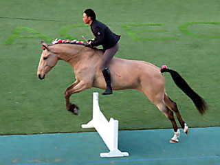 最終レース終了後、パドックで「 フリーダムホースショー」が行われました。 今日の演者は メキシカーナ。 |