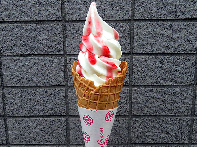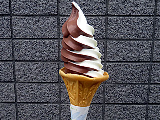 食後に内馬場の 「ラッキースイーツ」へ。 昨年と同じ「 イタリア生チョコソフトクリーム」が再登場となっていましたが、ミックスソフトの相手が 宇治抹茶から普通のミルクソフトに変更されていたので食べてみる。 さらに、トッピングに「ベリーソース」が新登場となっていたのでそちらも注文。 ともに甘くて冷たくておいしい! |