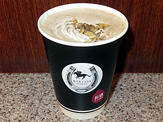さらに フジビュースタンド3Fの 「BAR2400@TOKYO」へ。 「 フェブラリーステークスオリジナルカクテル」を注文。 今年は紫芋リキュール+ウィスキー+キャラメルカフェオレ+マロンホイップクリーム+クラッシュ甘栗+芋けんぴと、芋づくしホットカクテルとのこと。 |