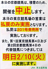 に雪のため中止となった東京競馬、京都競馬は、ともに明日へ順延となっています。