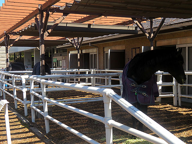 乗馬の展示コーナー。 今日は ペラ、 サファイア、 ナイトインロンドンの3頭が展示されていましたが、 ナイトインロンドンは初顔。 グレーターロンドン産駒で、先月の迎春S16着後、通算23戦3勝で引退。 |