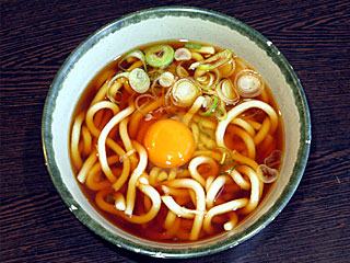 (うどん、生卵、ネギ)