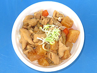 (牛肉、タマネギ、紅ショウガ、ミツバ、ご飯)